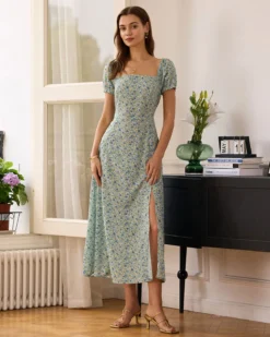 The Square Neck Floral Slit Maxi Dress