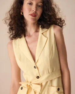 The Yellow Lapel Sleeveless Belted Mini Dress