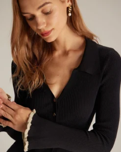The Black V Neck Contrast Trim Knit Mini Dress