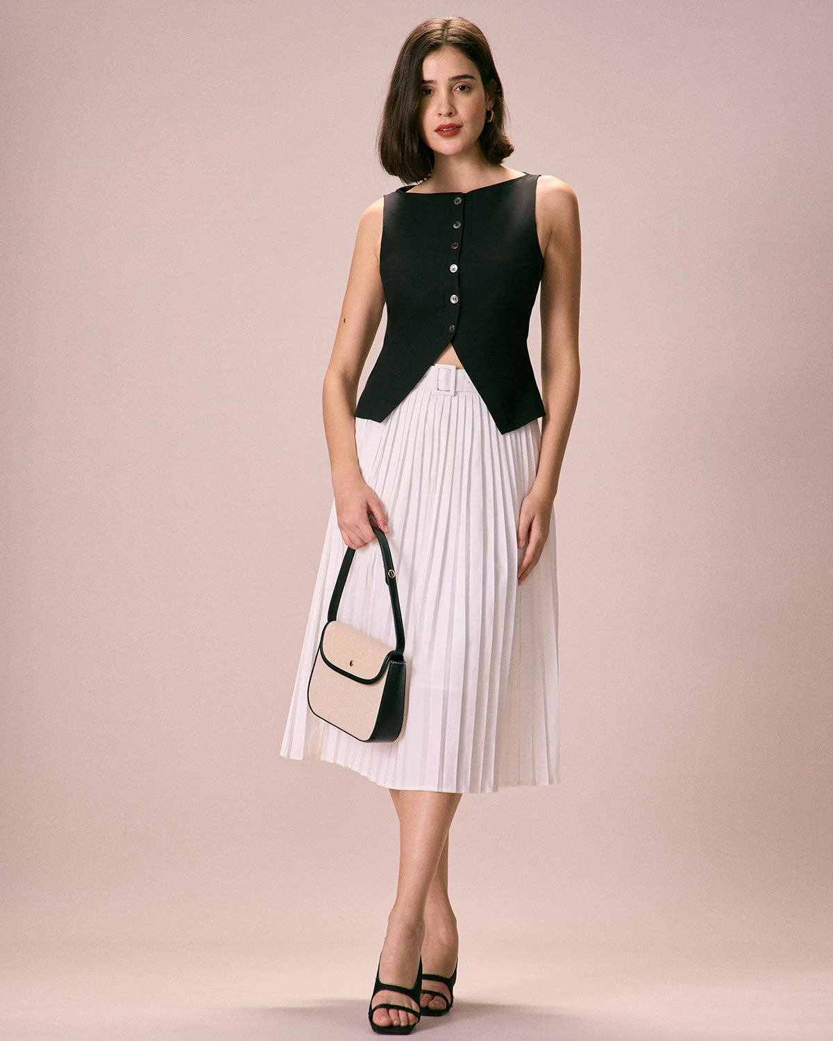 Crafted from a premium blend of lightweight, breathable fabrics, this black tank top ensures all-day comfort without compromising on style. The boat neck design adds a touch of elegance, framing your collarbones beautifully and providing a flattering silhouette. Adorned with delicate buttons down the front, it adds a subtle hint of charm and sophistication to any ensemble.Â
