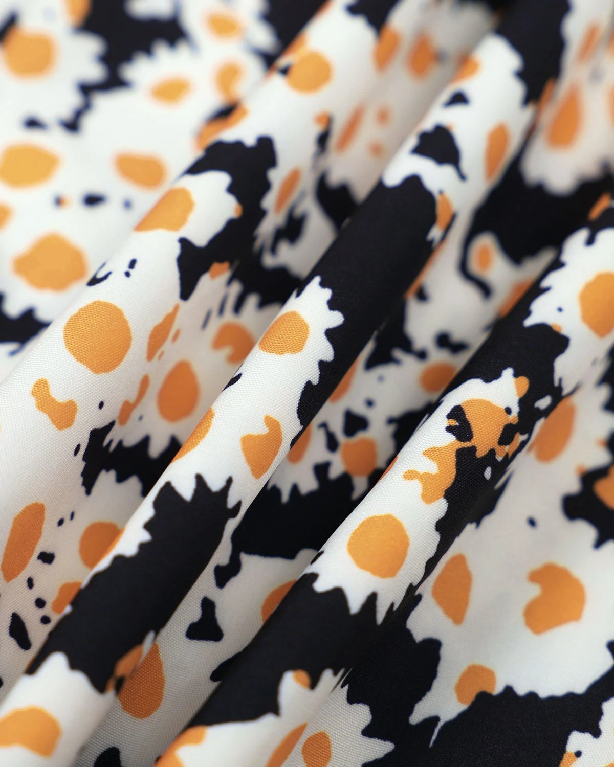 Crafted with meticulous attention to detail, this floral mini dress boasts a sleek silhouette that effortlessly accentuates your curves. Its elegant black hue sets the stage for the intricate daisy print, adding a touch of whimsy to its minimalist design. The ruched detailing along the sides adds depth and texture, while the adjustable spaghetti straps ensure a perfect fit. Whether you’re heading to a cocktail party, a night out with friends, or a romantic dinner date, this dress is sure to turn heads and make a statement.