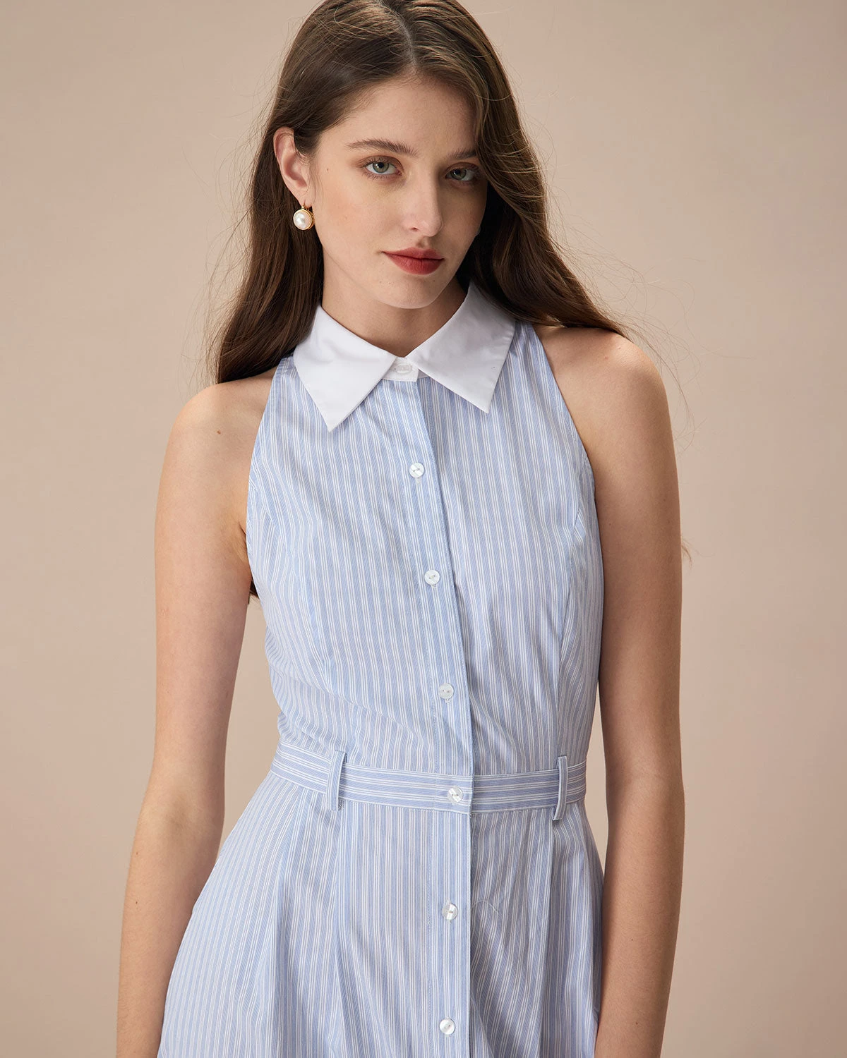 Designed with a lapel and button-up, this midi dress is perfect for officewear or daily leisure. Combined with its classic striped pattern, it gives a full display of female elegance and confidence. What’s more, the belt design lights the whole dress.