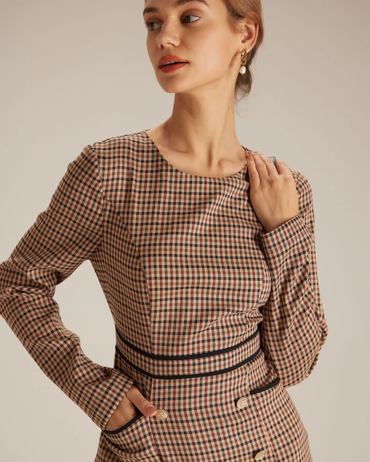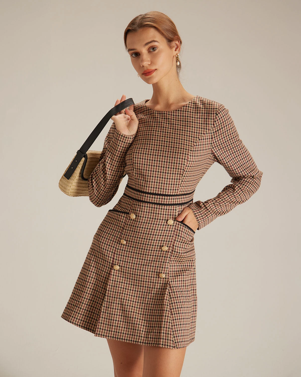 Be the first to review “The Brown Round Neck Plaid Button Mini Dress” Cancel reply