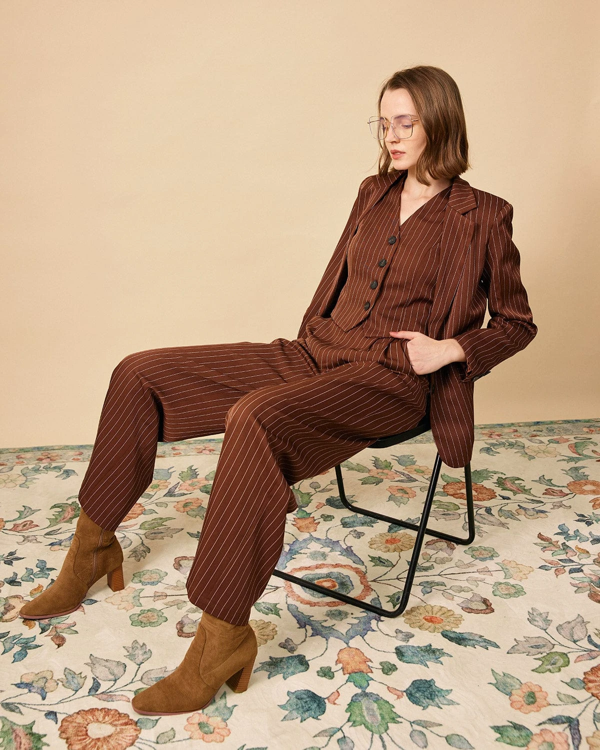 Be the first to review “The Brown Striped One Button Collared Blazer” Cancel reply