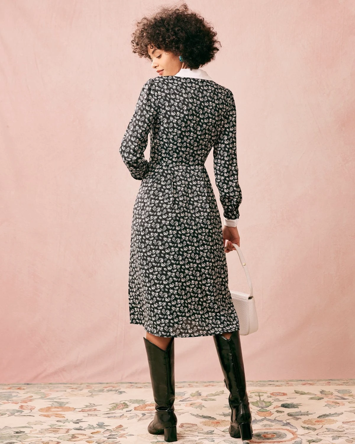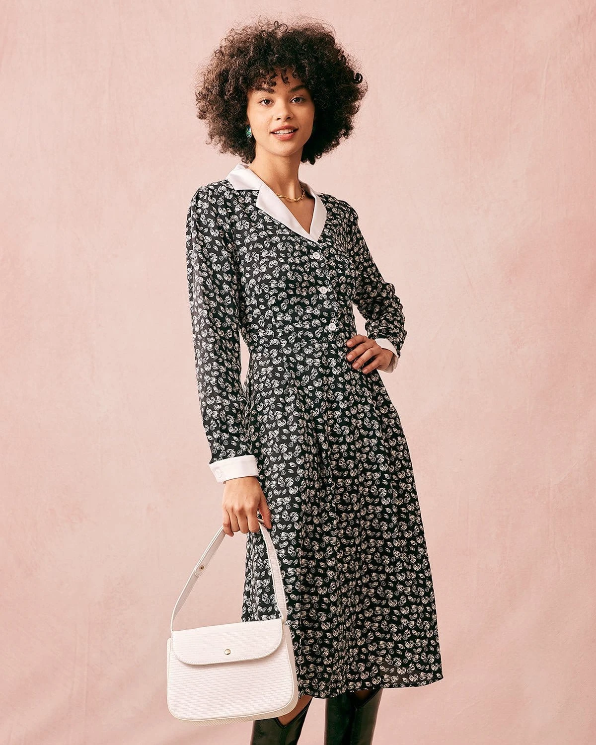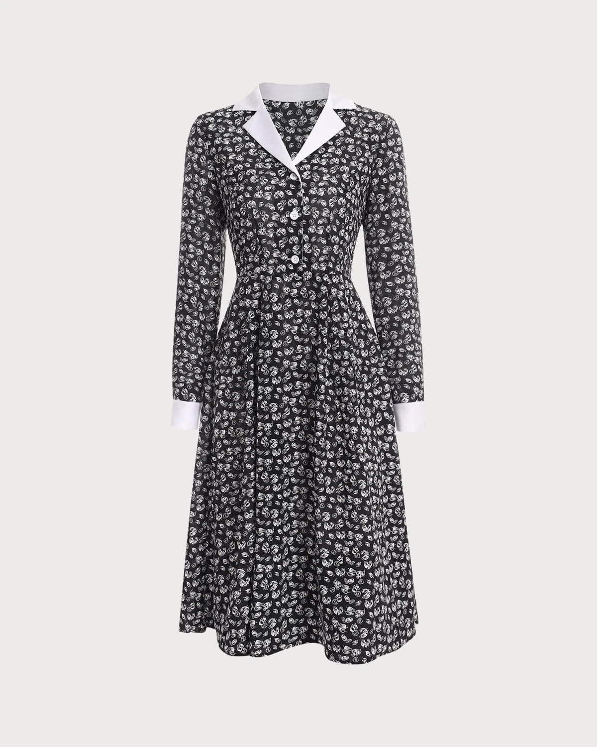 Give your wardrobe some new life with this long sleeve dress. The collared neckline and patchwork design add to the retro classic vibe of this feminine dress. The midi length with a high waist and buttons makes for an easy everyday look for almost any occasion including workwear, dating, or business casual wear.