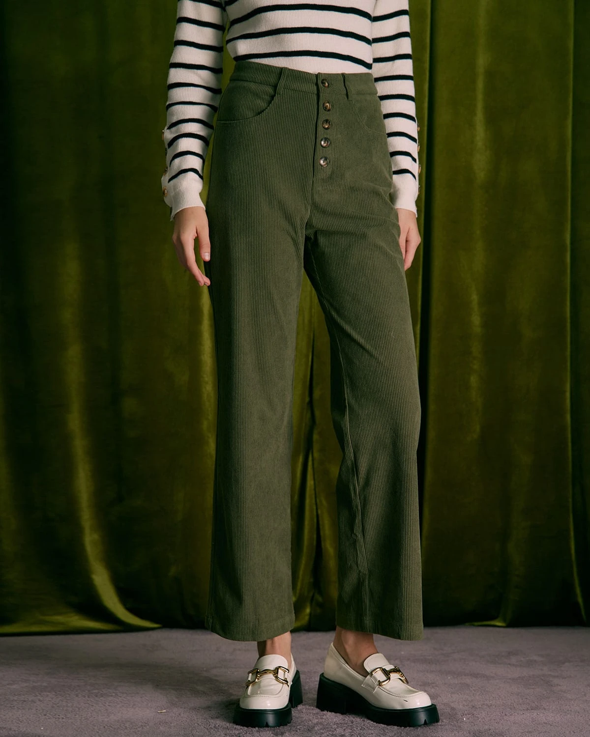 The Green Button Corduroy Wide Leg Pants