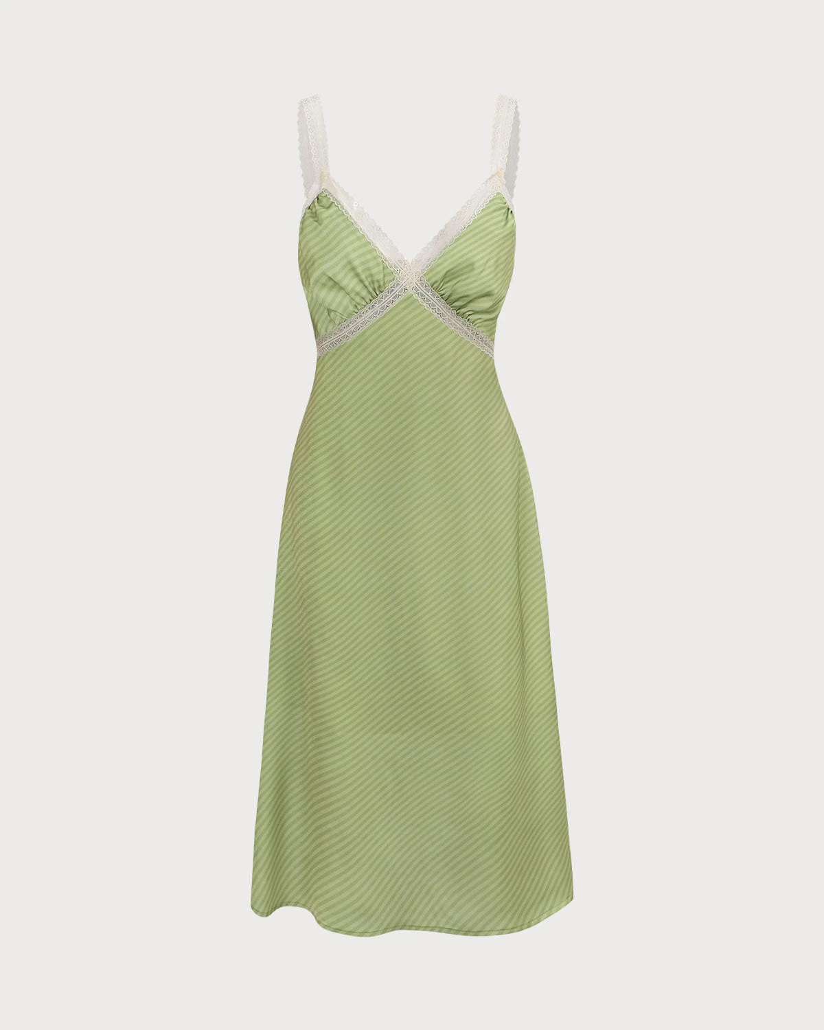 The Green V-Neck Lace Trim Satin Midi Dress