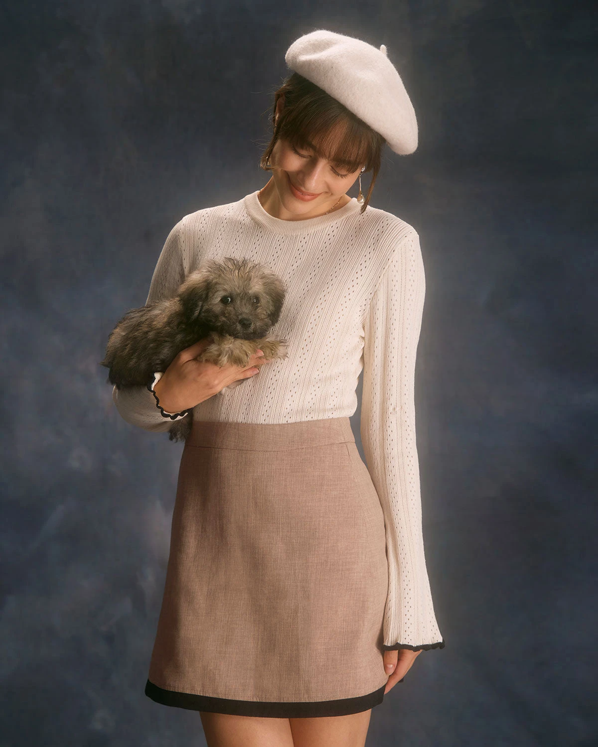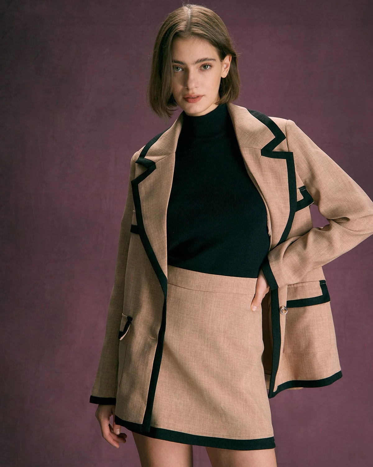 This High Waisted Skirt is a versatile piece that combines feminine style with modern comfort. The zipper fly and contrast trim detail adds a touch of elegance and pairs well with a variety of tops. The slim fit and high waisted design create a classic silhouette with a modern twist, perfect for any occasion. Whether dressed up with heels or dressed down with sneakers, this skirt is a must-have addition to any wardrobe.