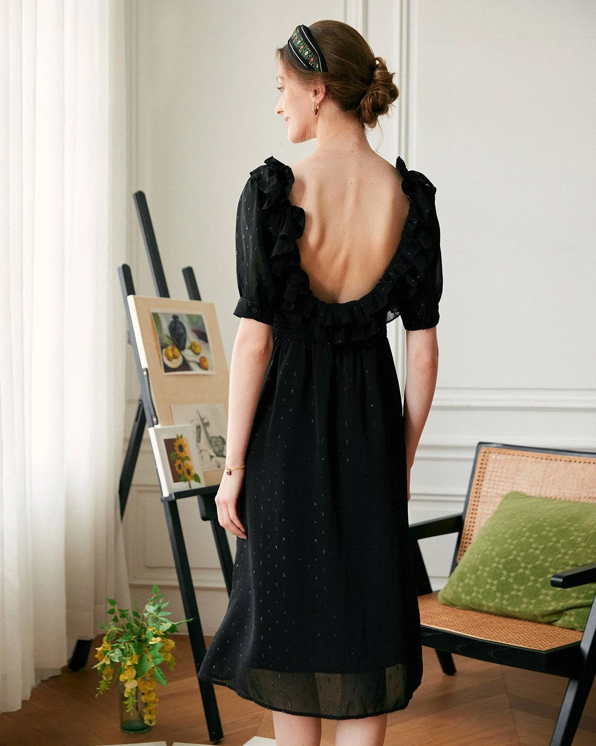 The Puff Sleeve Backless Midi Dress