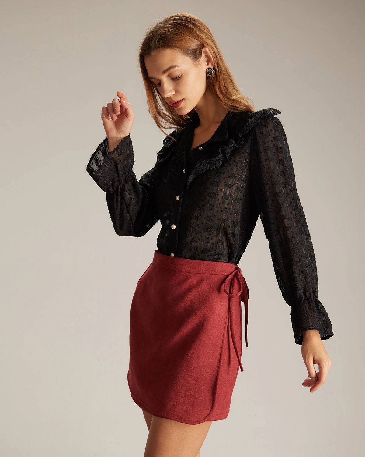 The Red High Waisted Tie Side Wrap Mini Skirt