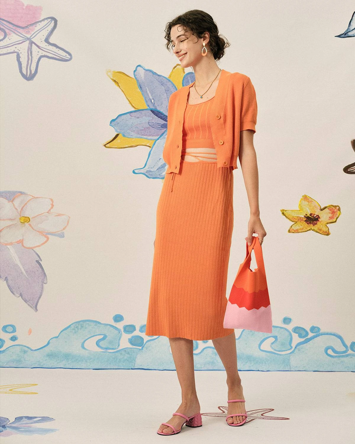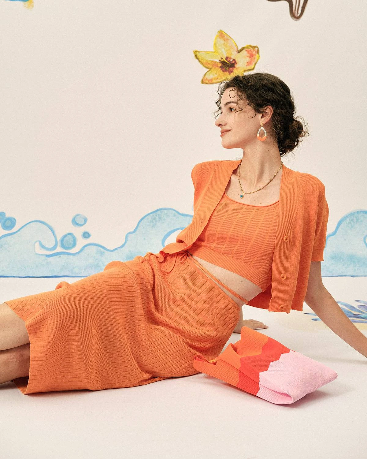 The orange offers enough gloss, making it bright and eye-catching. The combination of the U-neck and slim-fit design makes it look smooth and gentle for being worn. Coupled with the ribbed fabric, it looks textured, while the cropped tank top design adds a little sense of sexy to it. It is rather cozy and soft for daily/vacation wear.