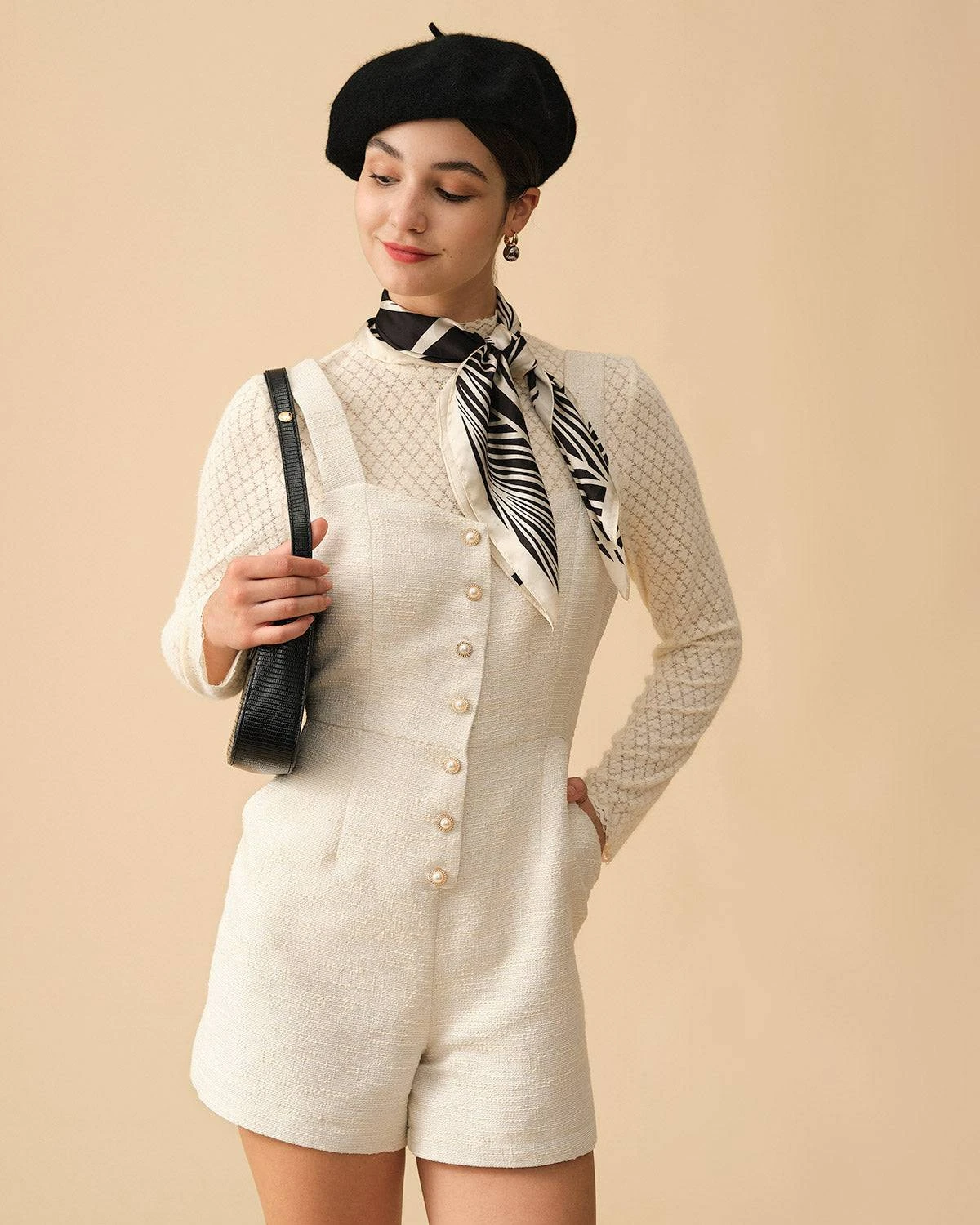 This solid color romper helps you create different styles of dressing. Different from the common button design, its pearl button design is shining and sophisticated to be eye-catching. Plus, the high-waisted design offers you a perfect figure ratio visually, while the sling design makes it possible to be worn internally and outwear, showing various styles. The pockets on two sides are fashionable and practical.