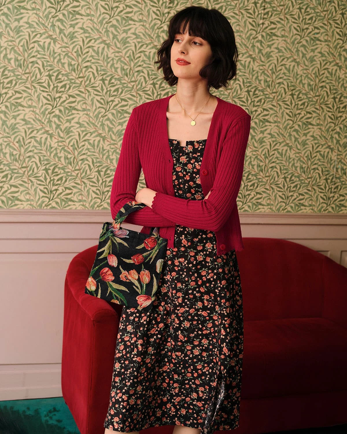The red serves as a good foil to the skin color texture of females. Together with the ribbed fabric, this cardigan is textured visually. Plus, the v-neck and single-breasted design are simple and casual, while the slim-fitting design offers a good look into females’ figures. Make a try to match it with a sling dress.
