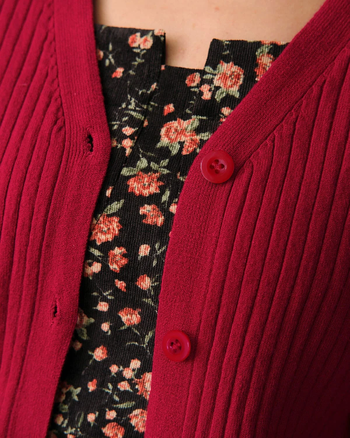 The Solid V Neck Ribbed Cardigan