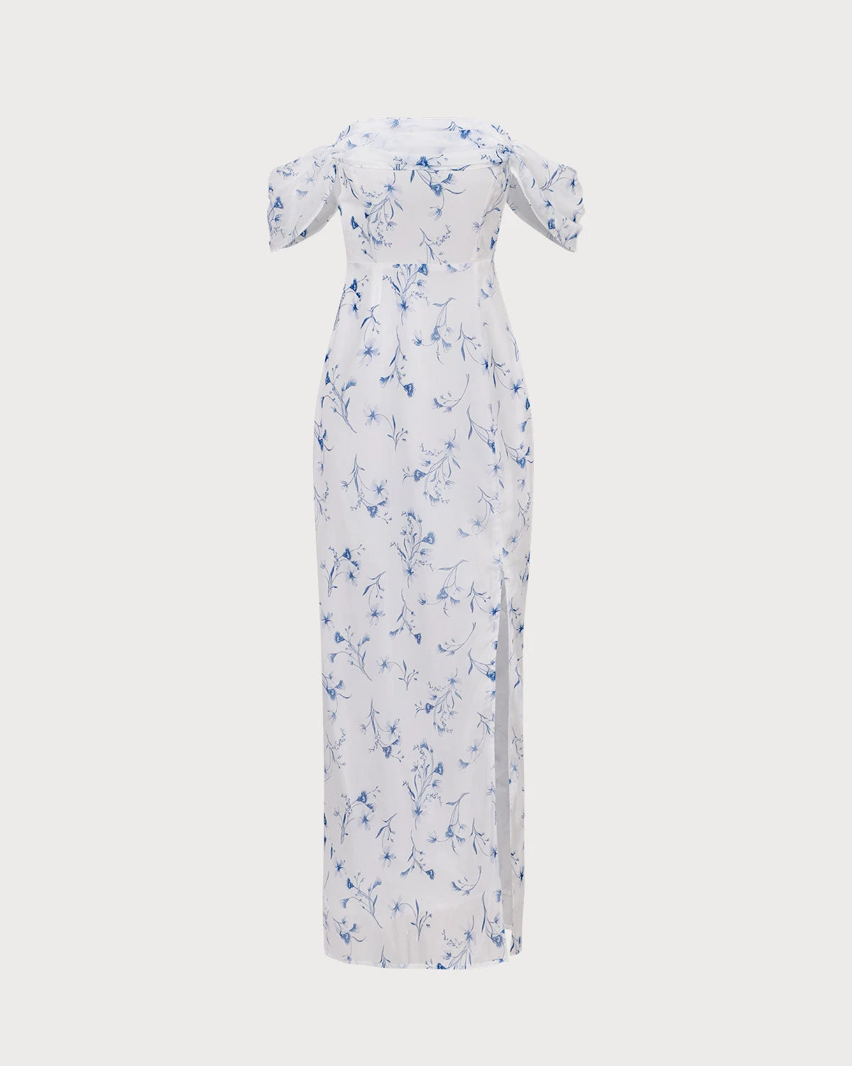 This Floral Maxi Dress features a vibrant floral pattern that beautifully contrasts against a pristine white backdrop, creating a fresh and captivating look. The strapless design highlights the shoulders and décolletage, while the thigh-high slit adds a hint of allure and freedom of movement.Â