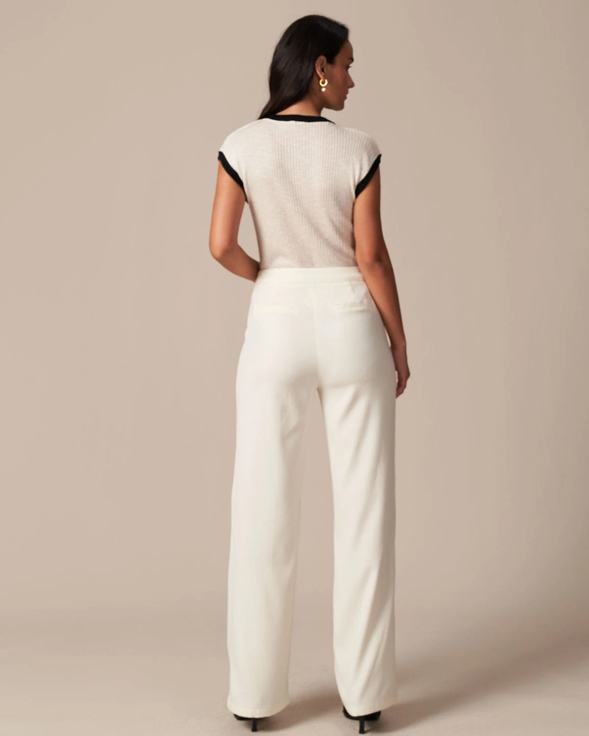 The High Waisted Pants are versatile piece that combines feminine style with modern comfort. The pockets, zipper fly and button design adds a touch of elegance and pairs well with a variety of tops. The straight and high waisted design creates a classic silhouette with a modern twist, perfect for any occasion. Whether dressed up with heels or dressed down with sneakers, the pants are must-have addition to any wardrobe.