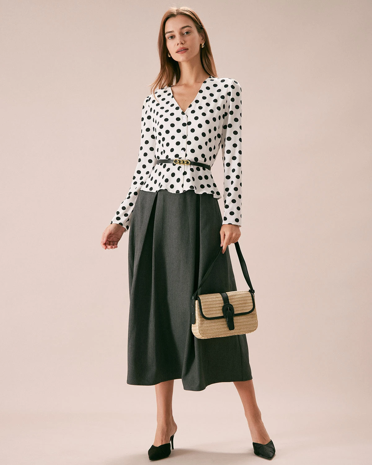 For a more laid-back take on an everyday chic staple, may as well add this Polka Dot Blouse to your wardrobe. Designed with long sleeves, v-neck and slim fit design, this short sleeve blouse is versatile for daily casual wear. Also, its button, ruffle and polka dot design adds a sense of design to it, great for matching your high-waisted pants.